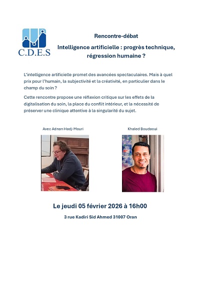 Date05 Fév 2026 Heure 16 h 00 min - 18 h 00 minIntelligence artificielle: progrès technique,régression humaine?Partagez cet événement+ Ajouter à mon Agenda Google+ iCal / Outlook export 00jours 00heures 00minutes 00secondes
