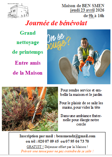 Jeudi 23 avril : Journée de bénévolat.