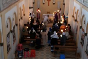 Une fois tous réunis, notre évêque nous a introduits dans le rite de la traversée de la Porte sainte, et nous avons suivi la Croix jubilaire, fièrement portée par Elias, un jeune universitaire burundais. En chantant le psaume 23, nous avons rempli le temple, soigneusement préparé pour l’occasion. La démarche pénitentielle a ensuite pris le relais, avec un temps prolongé de méditation de la Parole de Dieu et la possibilité de recevoir personnellement le sacrement de la réconciliation.